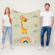 Wrap your little one in warmth and imagination with the Gentle Giraffe Adventure Fleece Blanket. This adorable blanket features a cheerful giraffe surrounded by playful elements like fluffy clouds, delicate leaves, vibrant rainbows, and blooming flowers. Perfect for creating a cosy and comforting environment, it sparks joy and encourages creativity with its whimsical safari-inspired design.