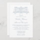This wedding invitation embodies a timeless, classic aesthetic with an elegant light blue font colour and a delicate graphic of a grand estate or venue. The design reflects luxury, tradition, and refinement, making it the perfect choice for couples seeking a sophisticated and upscale look.