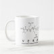 Vera spelled out in amino acids as V E R A (Valine Glutamic acid Arginine Alanine) on a mug for the scientist in you.