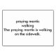 These flashcards feature a photo of a praying mantis insect, walking on the sidewalk. The text on the back says,