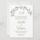 This elegant wedding invitation features a stunning arch of floral elements in moss green, perfect for a garden wedding celebration. The names of the bride and groom are highlighted in a delicate script font, accented with soft moss green hues. The background of the wedding invitation complements this natural theme with a rich green tone, while the back of the card continues the serene, botanical aesthetic