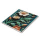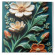 Vintage ceramic tile depicting a wildflower scene with white and orange flowers arranged in an asymmetrical vertical composition, against a sea green background, creating a vibrant and decorative floral design.