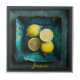 This painting features a stunning combination of verdigris and lemons on a square plate, captured with great detail and contrast. The title, "Verdigris and Lemons on a Square Plate: A Study in Contrasts", highlights the unique pairing of elements in the painting, making it a memorable and intriguing gift to loved ones.