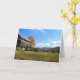 This notecard features a country autumn view of the field and mountains of Plymouth, Vermont