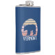 Well made flask, a little better than I had expected. Flask came in clear plastic box which gave it a nice presentation when I took it out of the zazzle packaging. Image is not printed on flask but on sticker. Don't know how this will hold up I haven't used it yet. This would make a Great gift! I plan to purchase more for friends! Cheers. I thought a little brighter than computer. Very crisp, writing wasn't