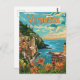 A captivating and nostalgic depiction of Vernazza, one of the picturesque villages in Italy's Cinque Terre. The design captures the vibrant pastel-coloured houses clinging to the cliffs, the charming harbour filled with fishing boats, and the rugged coastline meeting the azure waters of the Mediterranean Sea. Rendered in a vintage style, the artwork evokes the enchanting beauty and timeless charm of Vernazza, inviting viewers to explore its scenic vistas and cultural richness.