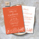 This Verona Sunset Floral All-In-One Elegant Orange Wedding Invitation showcases delicate line art flowers on a bright orange background, complemented by contemporary typography and script calligraphy. This invitation includes the wedding details on the back for those who wish to forego the separate cards for RSVP, hotel, and other info. It is fully customisable with the couple's names and wedding details. The formal design and wording will add a touch of elegance to your wedding celebration.
