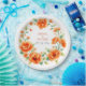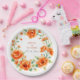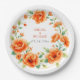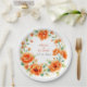 Verona sunset orange round floral frame wedding paper plate