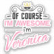 Of Course I'm Awesome I'm Veronica in mixed black and pink sans and cursive font lettering with scroll embellishments and topped a golden yellow crown.