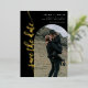 This modern minimalist save the date card features a sleek arch-shaped photo frame and elegant foil accents in your choice of gold, rose gold or silver. The clean design allows your photo to take centre stage, while the classy script and real foil add a touch of sophistication. The black background can be changed to any colour to match your wedding's colour scheme. Perfect for everyone looking for a chic and stylish save the date card.