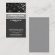 A business card template with an attractive vertical banded design in shades of grey and white with a decorative image texture area at the top. Company name and business type on the main band with Name, title and other address and contact details below, The reverse side of the card has been left blank with a mid grey flat colour. This can be left blank or further customised.