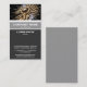 A business card template with an attractive vertical banded design in shades of grey and white with a decorative image texture area at the top. Company name and business type on the main band with Name, title and other address and contact details below, The reverse side of the card has been left blank with a mid grey flat colour. This can be left blank or further customised.