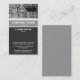 A business card template with an attractive vertical banded design in shades of grey and white with a decorative image texture area at the top. Company name and business type on the main band with Name, title and other address and contact details below, The reverse side of the card has been left blank with a mid grey flat colour. This can be left blank or further customised.