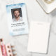 Modern vertical employee ID badge in a blue gradient design featuring a large photo area, editable name, title, company logo, and barcode. Perfect for corporate, retail, or office teams. Easy to customise for your professional needs.