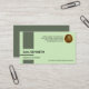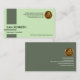 Overleaf, in a dark green cover, details are at the right wall of the card. The gold logo is at the top followed by your prestigious name, contact details and a slogan caption to publicize your services.