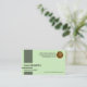 A light green cover is accentuated by a vertical dark green column stripe design at the left wall of the card ; It houses your prestigious name and job title. Towards the upper right corner is a gold manpower logo you can use with its business name and contact details. At the base is a slogan caption for you to publicize your services. You can change the caption remarks to suit your needs.