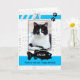 Add your vertical or portrait orientated cat's photo to this adorable card from the pet, featuring blue, white and black with a toy mouse, food bowl and a fish shaped I.D. tag where you put your kitty's name. Cute message inside is fully customisable for you to write your own message, suitable for birthdays or any occasion when Mum or Dad need a card from their favourite furry feline.