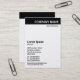 A vertical business card template with a black header. All details on the front with the back left blank, which can be left as is or further customised. The design also allows plenty of space for the addition of other elements e.g. a logo.