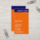 A vertical business card template with a dark blue header. All details on the front with the back left blank, which can be left as is or further customised. The design also allows plenty of space for the addition of other elements e.g. a logo.
