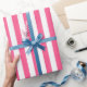 Vertical Hot Pink and White Stripes Wrapping Paper