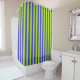 Vertical Lime Green and Blue Stripes Shower Curtain