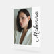 The Vertical Moment with Name acrylic sign features a full portrait image paired with a vertical script name along one side. With a clean white background and black text, this modern design brings a sleek editorial look inspired by magazine layouts.