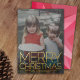 A modern look for a holiday photo card. A gold foil word - Merry Christmas - is on top of the photo and holiday greeting.