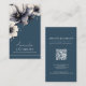 Vertical QR Code Blue Floral Elegant Professional Business Card