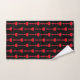 Vertical Red Heart Strings on Black Bath Towel Set