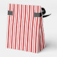 This design has red and white stripes that seem to belong at a circus or Victorian holiday.