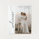 Minimalist wedding welcome tapestry with an arch shaped photo frame and elegant vertical calligraphy script. This tapestry is the perfect addition to any wedding, providing a warm welcome to your guests while also serving as a beautiful piece of decor. The arch shaped photo frame allows you to feature a special photo of the happy couple, while the vertical calligraphy script adds an elegant touch. Its minimalist design ensures it will complement any wedding theme or style. Make a statement with our minimalist wedding welcome tapestry at your special day.