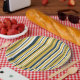 Vertical Stripes Mustard Yellow, Navy Blue, White Paper Plate