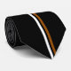 A simple yet bold necktie featuring thin white and brown vertical stripes on black. A perfect tie for an interview, graduation, wedding or even a party...a perfect tie for any occasion.