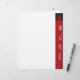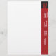 Turn the world on its side with this unique monogram letterhead. Your customised information runs up the vertical crimson bar on the right side of the paper. Your monogram stands out in matching red against the rich black box. Versatile enough for a variety of occupations: marketing professional, consultant, writer or anyone in the telecommunications or IT fields. Available in alternate colours with matching products.