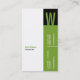 Turn the world on its side with this unique monogram business card. Your company name is striking against the lime green on the reverse, while your customised contact information runs up the vertical green bar on the right side of the card. A monogram sits against the rich black box while your name and title stand out on their own. Versatile enough for a variety of occupations: marketing professional, consultant, writer or anyone in the telecommunications or IT fields. Available in alternate colours with matching letterhead, labels and envelopes.
