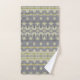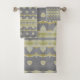 Decorative patterned bath towel set with shades of green, the black background  can be switched to any colour to match your home decor. A beautiful designer pattern.