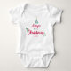 Design features the text "custom name" + "very first Christmas" + "custom year" along with a watercolor Christmas tree.