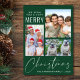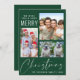 Modern seasonal green holiday greeting card featuring a 3 picture photo collage, "We Wish You A Very Merry Christmas" in mix of simple white typography and an elegant white script, and your name and the year.
