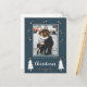 Modern Christmas Photo Holiday Postcard with cute doodle trees and stars and a text "Wishing you a very merry Christmas". The word Christmas is set in a whimsical handwritten script font. Personalise this Christmas Postcard with your photo and family name.