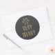 A unique, festive, vintage-inspired round sticker with a snowflake and the phrase "Very Merry" in gold glitter on a charcoal background. Perfect for holiday wrapping, decorating, and cards!