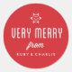 A unique, festive, vintage-inspired round sticker with a snowflake, the phrase "Very Merry," and your name! Perfect for holiday gifts, packages, decorating, cards, and envelopes!