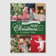 Custom printed magnetic holiday photo cards with a simple DIY template for customisation. This colourful design features whimsical typography in green and white colours. The message read "Wishing You a Very Merry Christmas". The template has space for 3 family photos. Use the design tools to edit the fonts and colours.