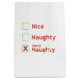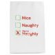 Three green check boxes with the words Nice, Naughty and Very Naughty in red text next to them, the box for Very Naughty has been checked with an "X" oops sorry Santa!