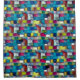 Very rough texture of colourful square shapes thro shower curtain