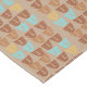 Inspired by mid-century modern designs. Bowl-shaped "stamps" in turquoise, yellow, and brown on a textured tan background.
