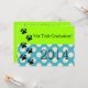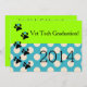 Vet Tech Graduation Invitations, lime and blue polka dots with dog paw emblems. Full customisable on front and back. Perfect for veterinary technician graduation.