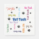 Let's celebrate! Congratulate that hard working vet tech student who successfully made it through tech school with a party featuring these cute vet tech paper napkins. The words vet tech are featured in many different fonts and colours on this unique party napkin. You can easily change the text, colours and sizes to make it a one of a kind card.