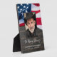 USA American Flag Memorial Plaque. This military memorial plaque features a United Staes of America Flag on a dark wood background. "In Loving Memory" Personalise this military plaque with your loved ones photo, name & dates, and sentiment. This American Flag photo plaque is a treasured keepsake, military funeral tabletop sign, and veteran memorial service or celebration of life. In Loving Memory Military Memorial American Flag Plaque. COPYRIGHT © 2020 Judy Burrows, Black Dog Art - All Rights Reserved. Veteran Memorial Military Photo USA American Flag plaque