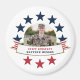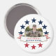 Honour your serviceman with this patriotic red white and blue three inch round magnets featuring a single centred circle photograph, a stars and stripes banner with a faux foil border and placeholders for your special service person's name and rank. Great gifts for parents and grandparents to put on their refrigerator! Available in other sizes.