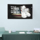 "Home of the Free, because of the Brave" 3'x5' banner. Features soldier's boots in pencil on an American flag background.
